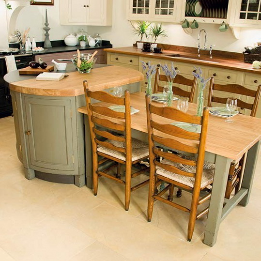 Well suited for addition to the national style kitchen, new and comfortable dining room looks beautiful crafted piece with the corresponding table. Available in over 70 colors with the table in various sizes, each of them in accordance with the specification. Shown with an oak top, this kitchen is worth about $ 12,000.