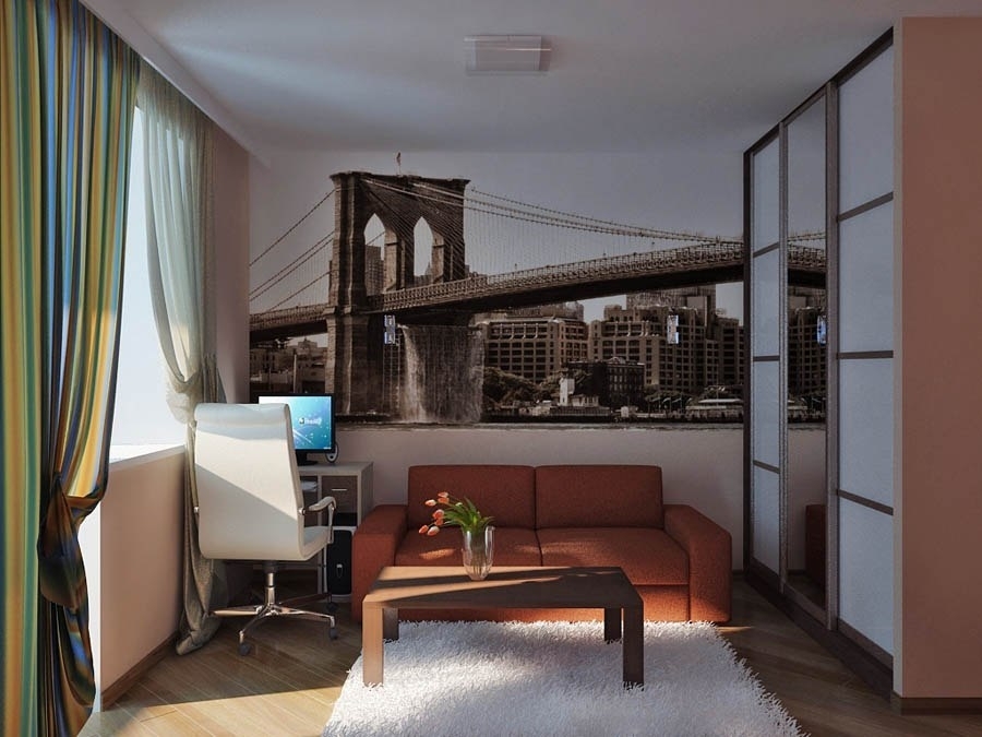 A simple but ample furniture, what could be better for a small apartment, and brightly decorated box will add comfort.
