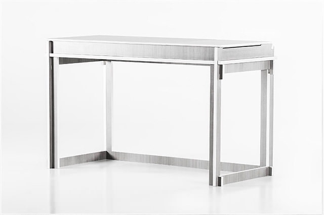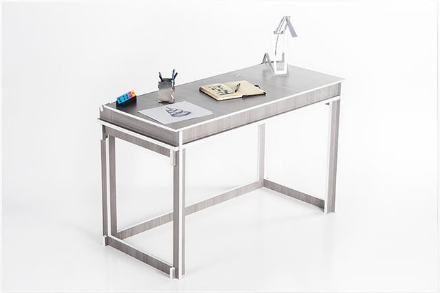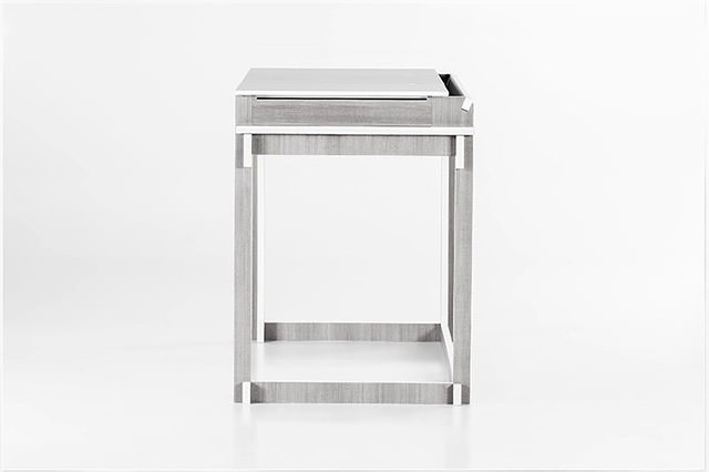 Mexican studio Masiosare designed and created desktop Circunscriba. It is made effectively and efficiently, with good and durable material. The color scheme varies from white to gray. The surface is formed by three sliding boards allow you to change the work surface so that it is convenient to the user. The right side of the table rises, creating a convenient stand for books. Each of the side portions extends and provides a mini locker for storage of books or stationery.