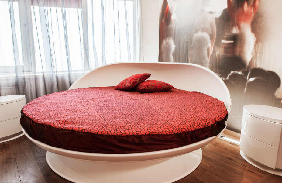 The bed is Serenissima (model Calice) and it is remarkable that it turns around. Such solution besides a wow-effect has quite reasonable grounds: Magic Mirror system is also built in the wall with mirror surfaces, and there is no less interesting view from the 32nd floor – future dwellers will have a free choice.