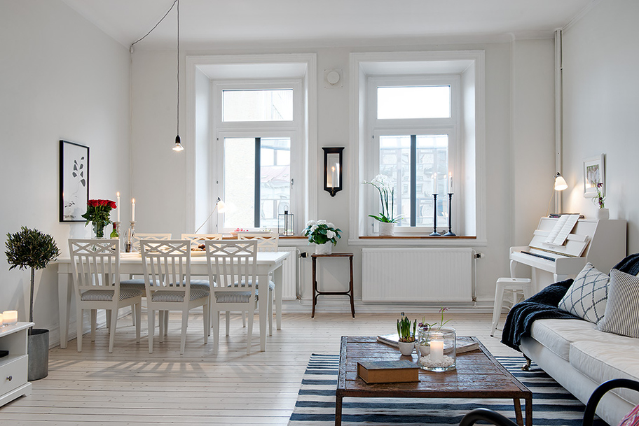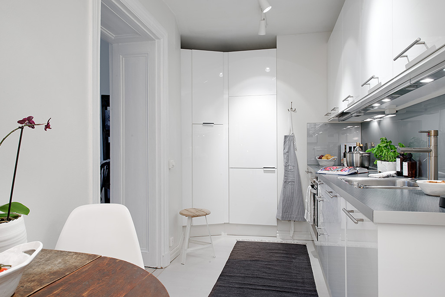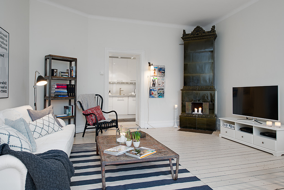 This two-room apartment of 62 square meters. With Scandinavian style, it is located on the second floor of a house built in 1906 in the heart of Gothenburg, Sweden. High ceilings, antique fireplace and wood floor left over from a previous life, and modern furniture and stylish accessories have come out of this. Bright finish fills the room with light and making them spacious, provided that advance the already good planning. As a result, the apartment looks very fresh and young people.