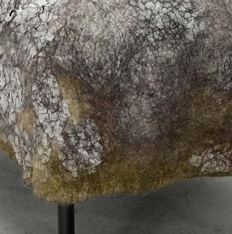 New collections of Israeli designer Ayala Serfaty’s sculptural furniture and lighting includes upholstered furniture resembling lichen-covered stone, looks not very usual, you find yourself in another world, come even later.