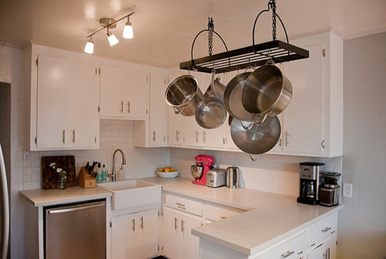This white kitchen looks very light. It is one of the advantages of white rooms. It is no need to place a large amount of light sources there. Localized lighting is quite enough for it.