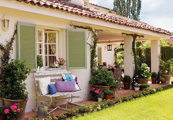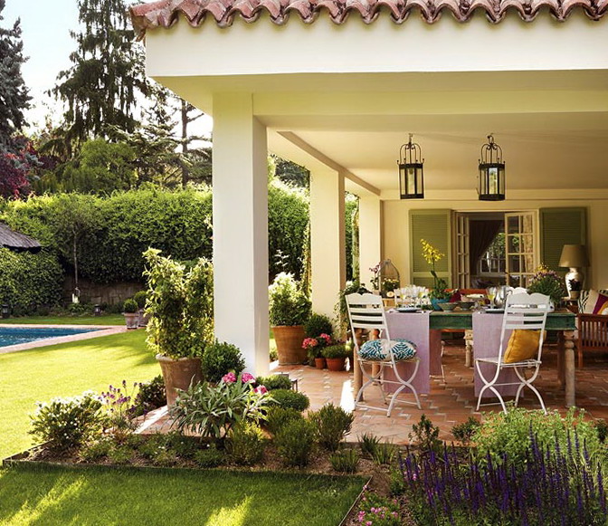 This beautiful house, surrounded by trees, is sure to impress judges of beauty. In the yard all arranged for rest and relaxation. It’s nice sitting on a bench in the courtyard, enjoy the natural environment. Green lawn gives the smell of fresh grass, beautiful flowers in large tubs and flower pots decorate the terrace. Blue expanse of the pool adds freshness on hot days. Vines twine play on the contrast of the light house walls and dark green leaves of the plant.