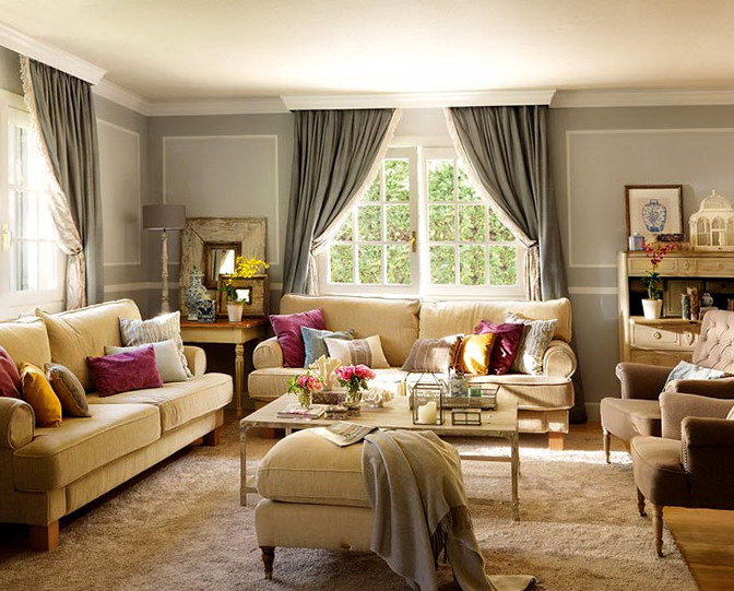 Furniture and decor with a touch of antiquity. Vintage style allows you to create an exclusive interior. The abundance of decorative elements - pictures, mirrors in large frames, pillows, vases and flowerpots - create a unique, characteristic only of this home decor. Created with their own hands elements reminiscent of the values and family traditions. Even the white decorative bird cage perfectly fit into the interior of the hall.