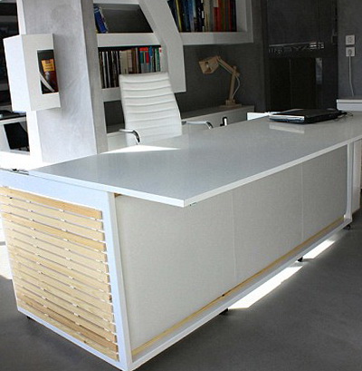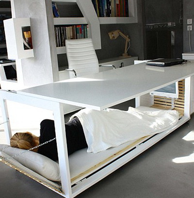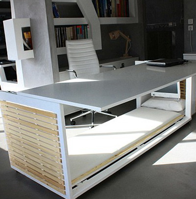 If you are often late in the office or even you have to spend the night there, then you will appreciate the designer table-transformer. In working time table looks like a perfectly ordinary, but once you get tired, it can be expanded and turned into a quite cozy bed size 200 x 80 cm, which is quite enough for one person.