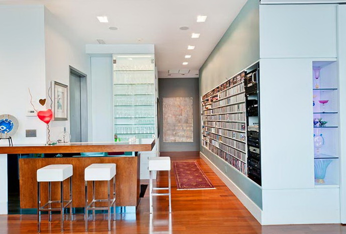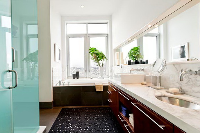 Lovely New York penthouse has a total area of 300 sq.m. and is located on the top floor of a house in Brooklyn. The spacious apartment consists of three bedrooms, a living room, a study, three bathrooms, a kitchen, a dining room and a spacious outdoor terrace. The apartment is hardly used complex geometric shapes, all simply and concisely. From the penthouse offers a great view of the big city, which can be enjoyed anywhere in the apartment. Windows occupy the space from floor to ceiling, window sills do not interfere with inspection.