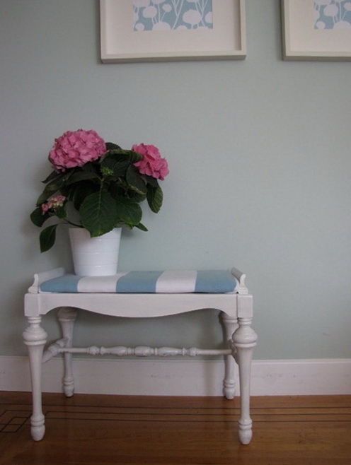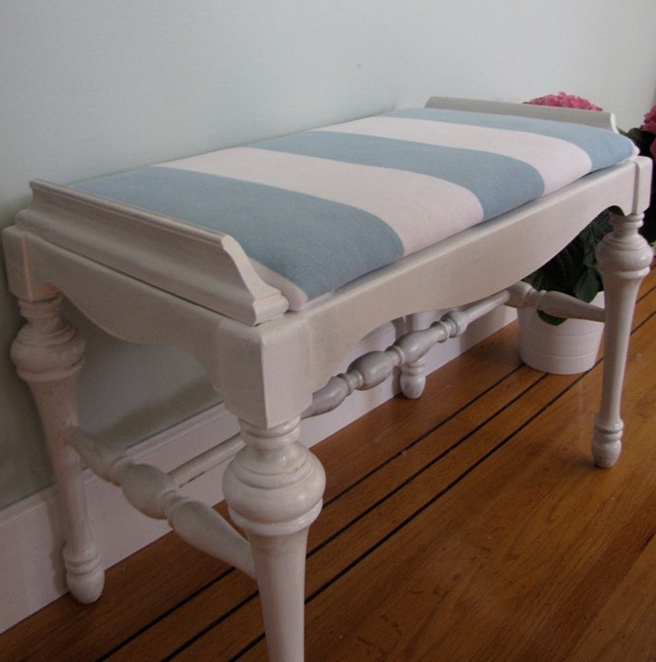 Wooden frame couches we clean with sandpaper from a previous paint, dust and dirt, burrs. Staining (in this case a white paint). Leave to dry for a few hours, then install the updated harnesses. Shots of your couch!