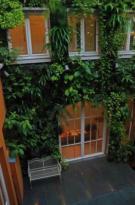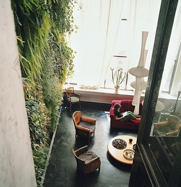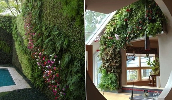Indoor residential vertical gardens. The following images show the home office of the world famous botanist and Father Patrick Blanc’s vertical gardens. He is depicted standing below in the foreground of one of his most famous creations of green - the walls of the European Parliament in Brussels. Balance skill evident in the large-scale production of horticultural plants.