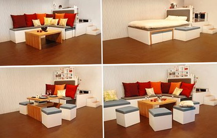 In the same complex, Transformers combined living room, dining area, bedroom, and even a work area with high-grade, narrow course, but still the table. As they say, all in one. The whole complex is in a folded state is only 4 square meters, and unfolded all 15 m.