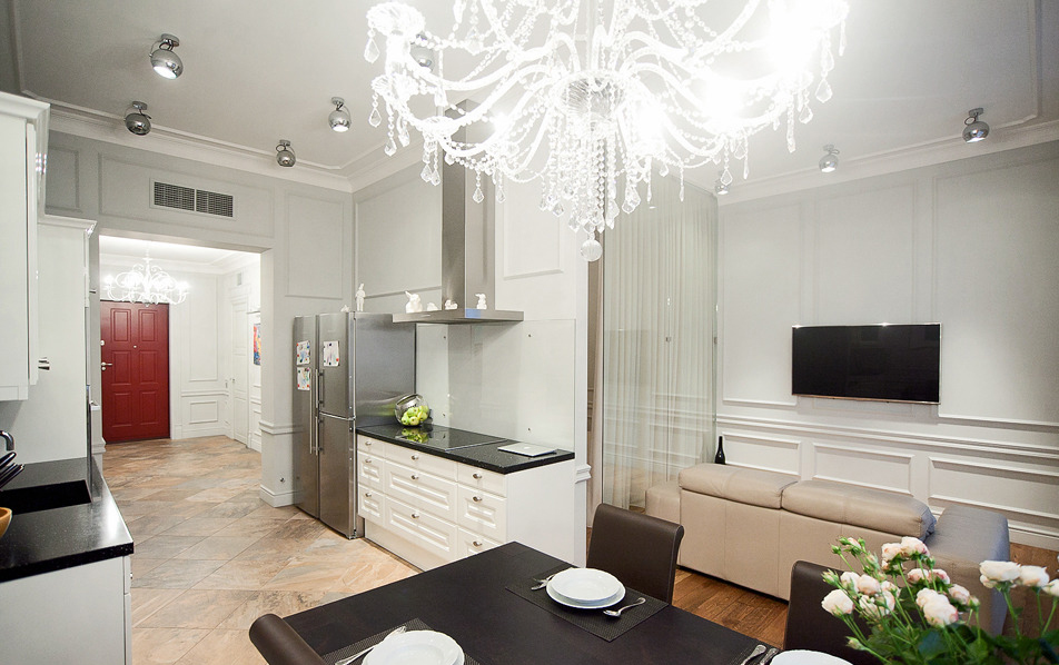 Alisa purchased the apartment in one of the towers of Moscow-City in 2006, when the complex had been still under construction. The construction was delayed because of the crisis, and the repair took one more year. The hostess had a complete vision of her future dwelling and worked at the layout and the interior together with her friend – an architect Margarita Bezgina. They decided not to make too many walls in an empty perimeter. A large glass is mounted into the only wall between the bedroom and the living-room. The space becomes much more open due to panoramic windows and light walls. But the hostess began to miss small yards and old Moscow flats for a year of living here.