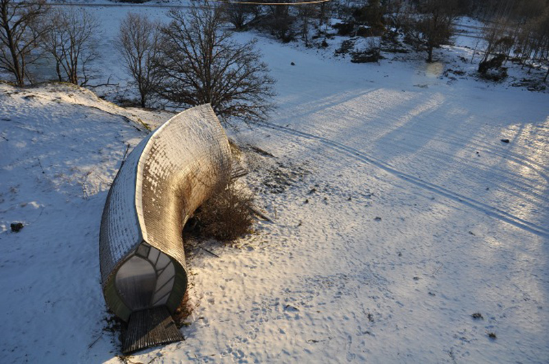 The children’s room was separated from the kitchen and the living-room by dense curtains. A wood grating closes the staircase on all sides so that a child doesn’t fall down.
